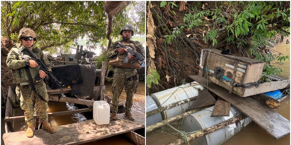 «Localizamos y neutralizamos nueve dragas empleadas para la explotación ilícita, junto con insumos líquidos y motores. Se presume que estos dispositivos pertenecen al grupo armado residual Carolina Ramírez, que financia sus actividades fuera del marco de la ley mediante la minería ilegal».