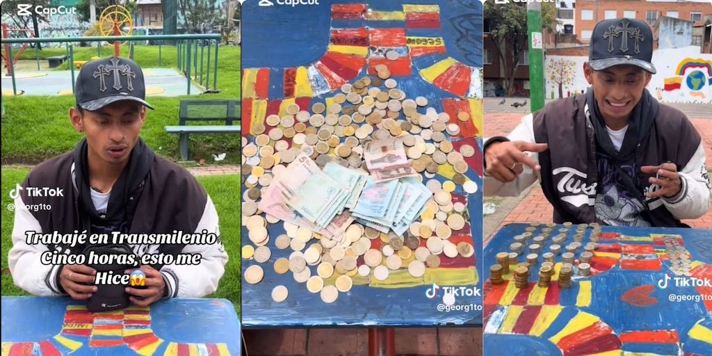 El joven cantante urbano Georgito, conocido en TikTok como georg1to, se ha convertido en el centro de atención en redes sociales tras viralizar un video en el que muestra las ganancias obtenidas después de cantar durante cinco horas en el sistema Transmilenio de Bogotá. En la grabación, el artista exhibe una bolsa llena de monedas y billetes que suman un total de 135.000 pesos, desglosados en 78.000 pesos en monedas y 57.000 pesos en billetes, contados detalladamente sobre una mesa en un parque, mientras celebra el monto reunido y agradece el apoyo de sus seguidores y del público que lo acompañó en su jornada.