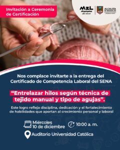 Alcaldía de Manizales Mujeres formadas en 2025 reciben certificación que reconoce talento en crochet Leer Noticia » 9 de diciembre de 2025