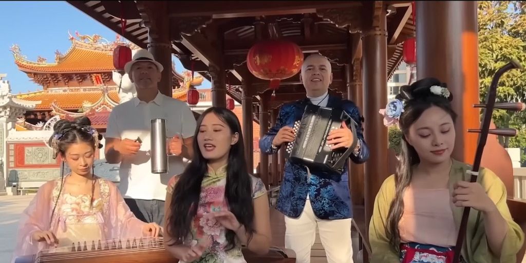 El video, filmado en las calles de Xiamen, China, muestra a los músicos vestidos con atuendos tradicionales chinos interpretando la pieza en medio de templos y arquitecturas típicas del país asiático. Publicado recientemente en YouTube, el lanzamiento ha generado reacciones mixtas en redes sociales, donde los comentarios destacan la innovadora mezcla cultural y el respeto al origen nostálgico de la canción, con tres mujeres ejecutando magistralmente el erhu y el guzheng.