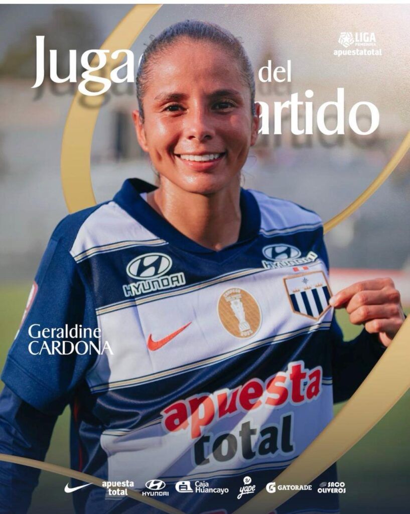 También tiene una destacada actuación en Alianza Lima del Perú la volante Geraldine Cardona, Hernano del futbolista Edwin Cardona, quien cerró su ciclo en Atlético Nacional para vincularse al fútbol internacional, donde brilla con luz propia como líder del campeón peruano, donde además de ser titular, es escogida regularmente como la figura de los partidos.