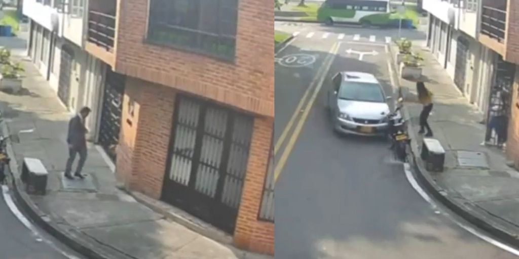 En una zona residencial de Bogotá, un hombre no identificado intentó agredir a dos perros que ladraban desde el interior de una vivienda, metiendo las manos a través de la reja de la casa. La joven propietaria de los animales lo confrontó verbalmente, lo que provocó que el individuo regresara minutos después en su vehículo y acelerara directamente hacia ella, derribando una motocicleta estacionada que sufrió daños materiales severos, aunque afortunadamente no impactó a la mujer. El incidente, ocurrido por motivos relacionados con los ladridos de los perros, fue captado por cámaras de seguridad y difundido masivamente en redes sociales por la cuenta @PlataformaAlto en X.