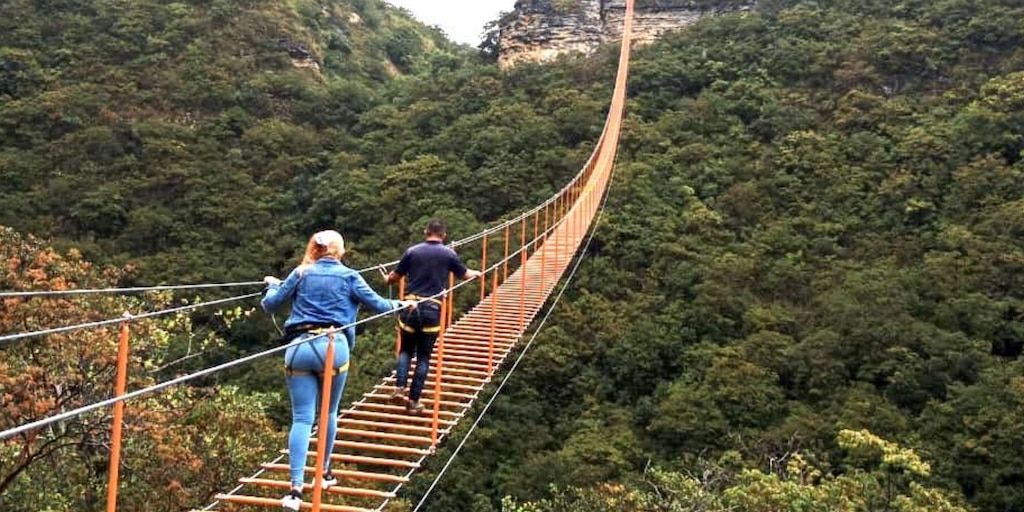 «Con una longitud de 254 metros y cerca de 600 escalones, la estructura se extiende entre la Quebrada Guatoque y el río Moniquirá, convirtiéndose en un símbolo del turismo de aventura en el país» — Sistema de Información Turística de Boyacá