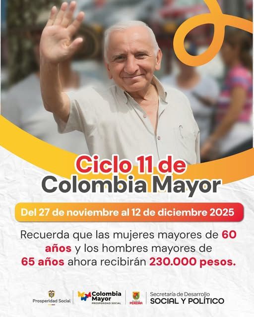 El ciclo 11 de pagos del programa Colombia Mayor comenzó en Pereira, dando continuidad a la entrega de recursos para los adultos mayores inscritos en este beneficio estatal.