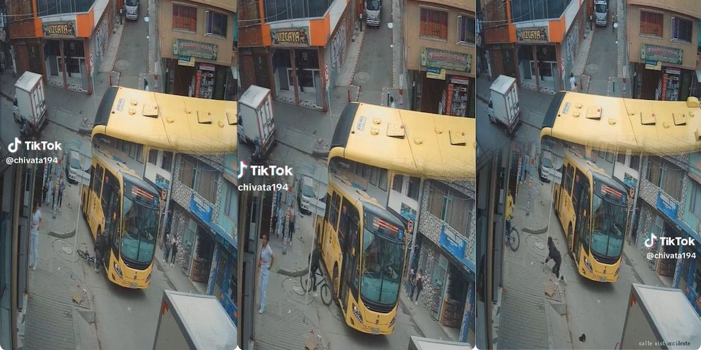 En un insólito incidente ocurrido en medio de un trancón en Bogotá, un hombre que presuntamente huía en una bicicleta robada colisionó de frente contra un bus del SITP que estaba detenido, lo que permitió que un joven con camiseta de la selección Colombia, dueño aparente del vehículo, recuperara su propiedad. El ciclista perdió el control durante la persecución y chocó frontalmente, generando un video que se viralizó rápidamente en redes sociales.