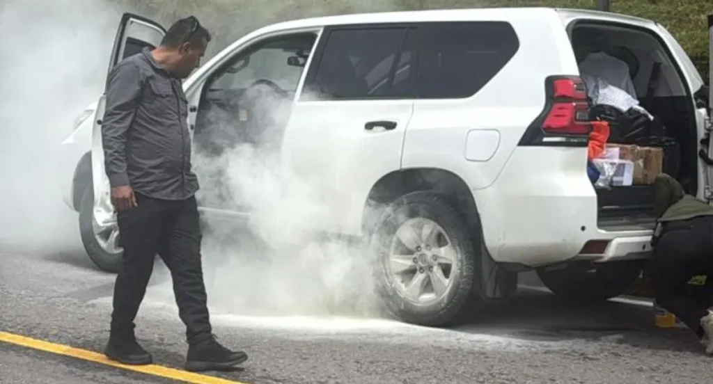 Las versiones iniciales indican que la unidad oficial de seguridad que acompañaba a la senadora presentó fallas mecánicas, provocando humo desde el motor. Observadores difundieron en redes imágenes de la camioneta Toyota de color blanco.