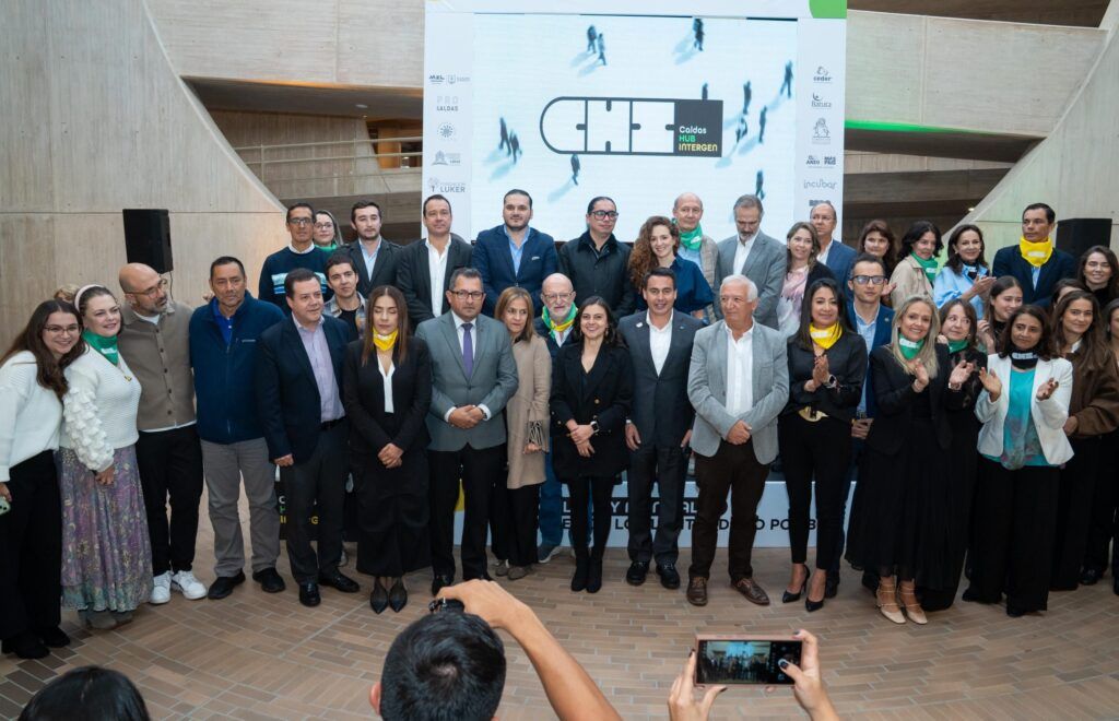 El lanzamiento quedó documentado mediante imágenes que muestran el desarrollo del acto de presentación del proyecto Caldas HUB Intergeneracional.