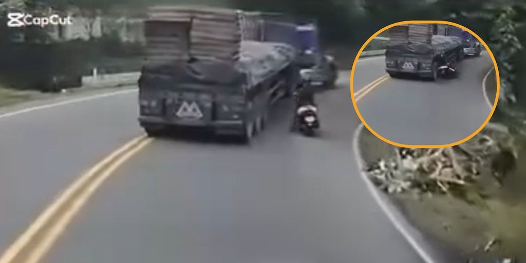Motociclista pierde control en curva y casi colisiona con tractocamión en vía La Pintada-Santa Bárbara, Antioquia