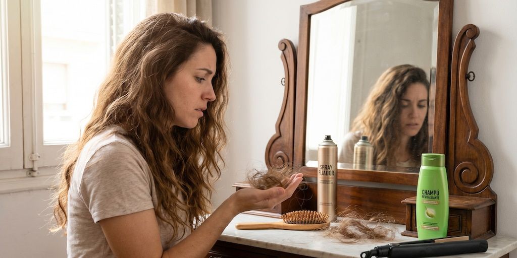 La Academia Americana de Dermatología y MedlinePlus alertan que diversas prácticas cotidianas, como peinados ajustados con tracción como coletas altas, trenzas apretadas o extensiones, el abuso de herramientas térmicas como secadores y planchas, junto con el uso excesivo de químicos, una dieta pobre en proteínas, hierro, zinc y vitaminas, el estrés intenso derivado de cirugías, enfermedades o el parto, y dormir con el cabello mojado sobre fundas de algodón, aceleran la caída del cabello más allá del rango normal de entre 50 y 100 hebras diarias, provocando daños en los folículos, la fibra capilar y el equilibrio nutricional.